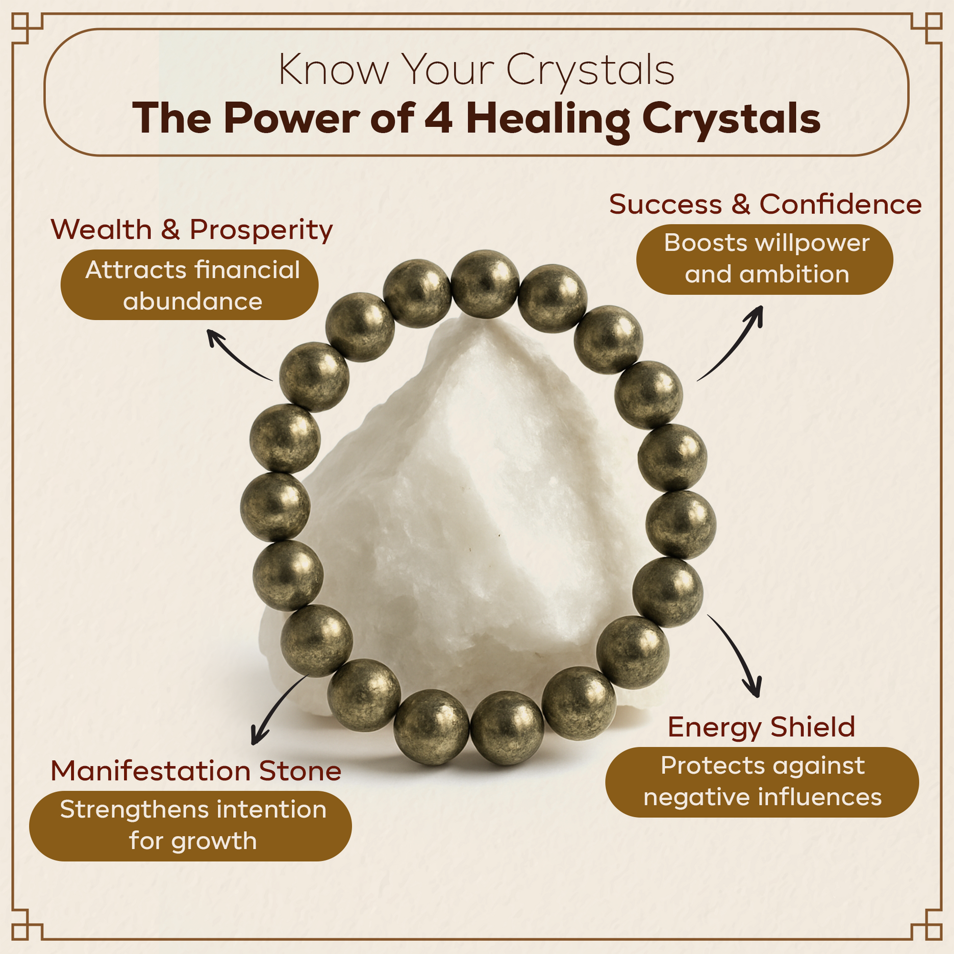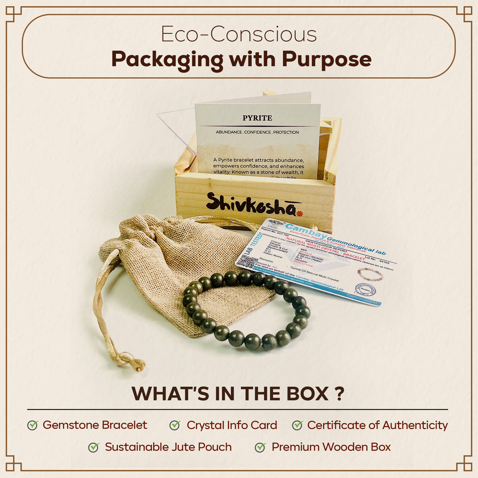 Shop natural Pyrite Bracelet at Shivkosha. Known as “Fool’s Gold”, Pyrite attracts wealth, success, confidence & protection. Buy online today!