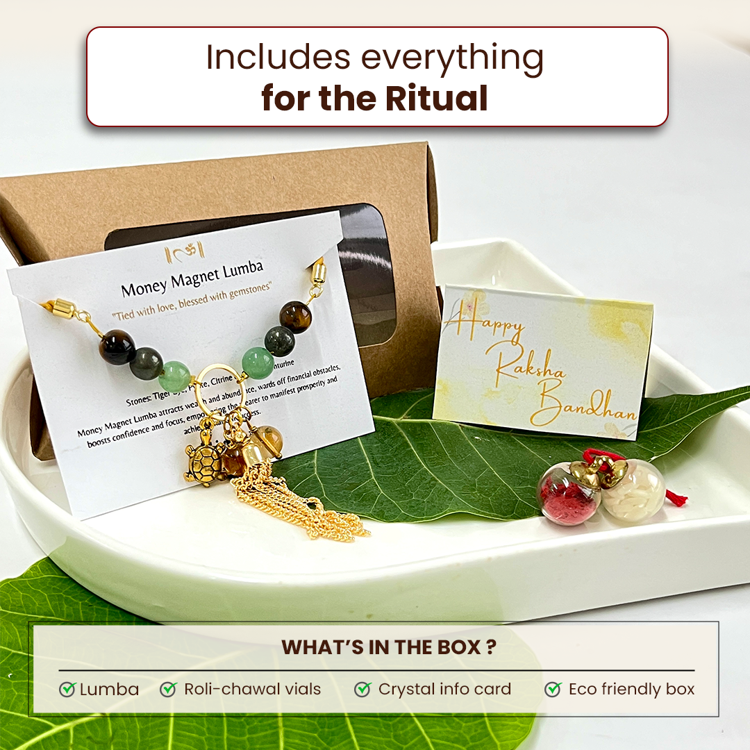 Today, Lumba Rakhis have become stylish yet spiritual accessories, like the Money Magnet Lumba Bracelets