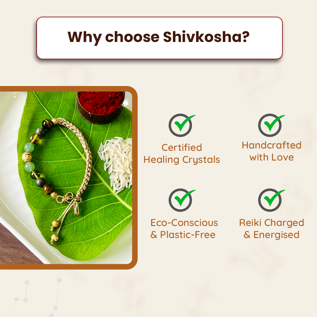 This Money Magnet Bracelet Rakhi is a powerful fusion of ancient tradition and modern intention. Designed especially for Raksha Bandhan, it not only symbolizes your sacred bond with your brother but also channels abundance, protection, and prosperity through the energy of powerful crystals.