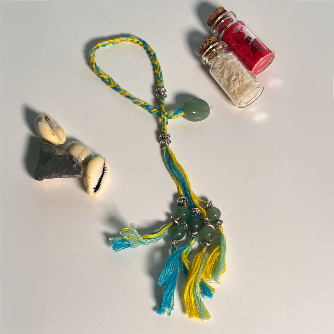 Green Aventurine is known as the "Stone of Opportunity" — and when crafted into a Lumba Rakhi, it becomes a powerful, meaningful token of love and blessings.