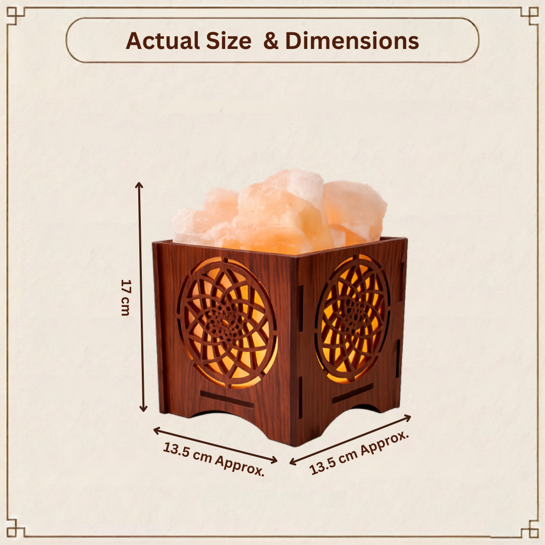 Each salt crystal is naturally formed, making every lamp unique in texture, tone, and glow. The combination of grounding wood and pure Himalayan salt creates a harmonious blend of nature and sacred artistry.