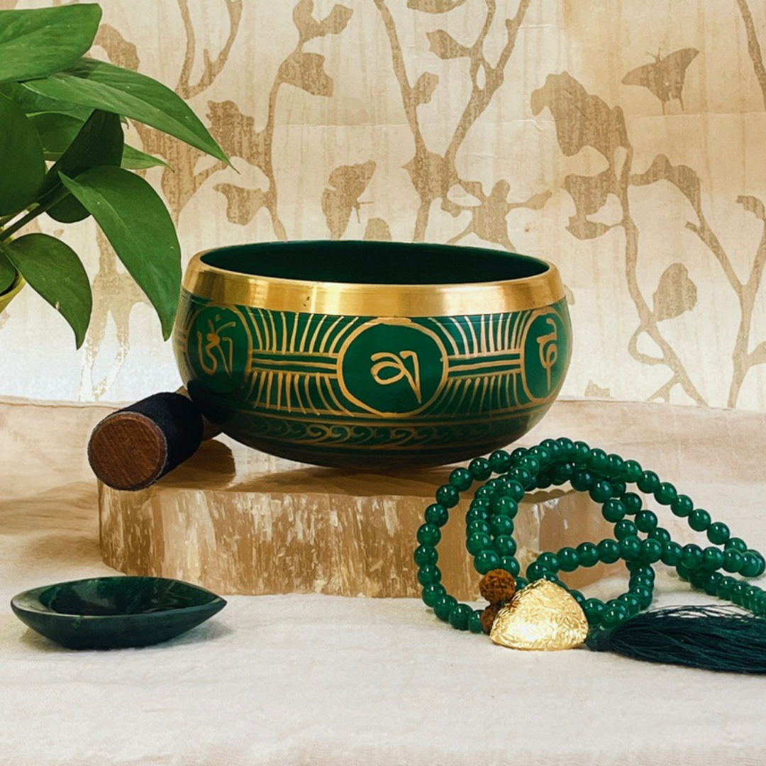 Green Tibetan Singing Bowl – Handcrafted Sound Healing Instrument