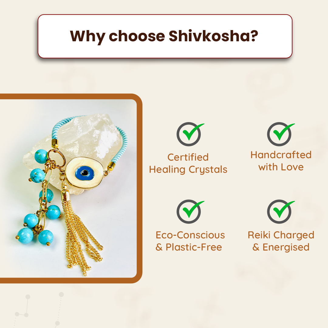 The Turquoise & Evil Eye Bracelet Lumba is a stunning blend of tradition and modern spirituality, specially crafted for sisters-in-law (Bhabhi) or beloved women in the family.